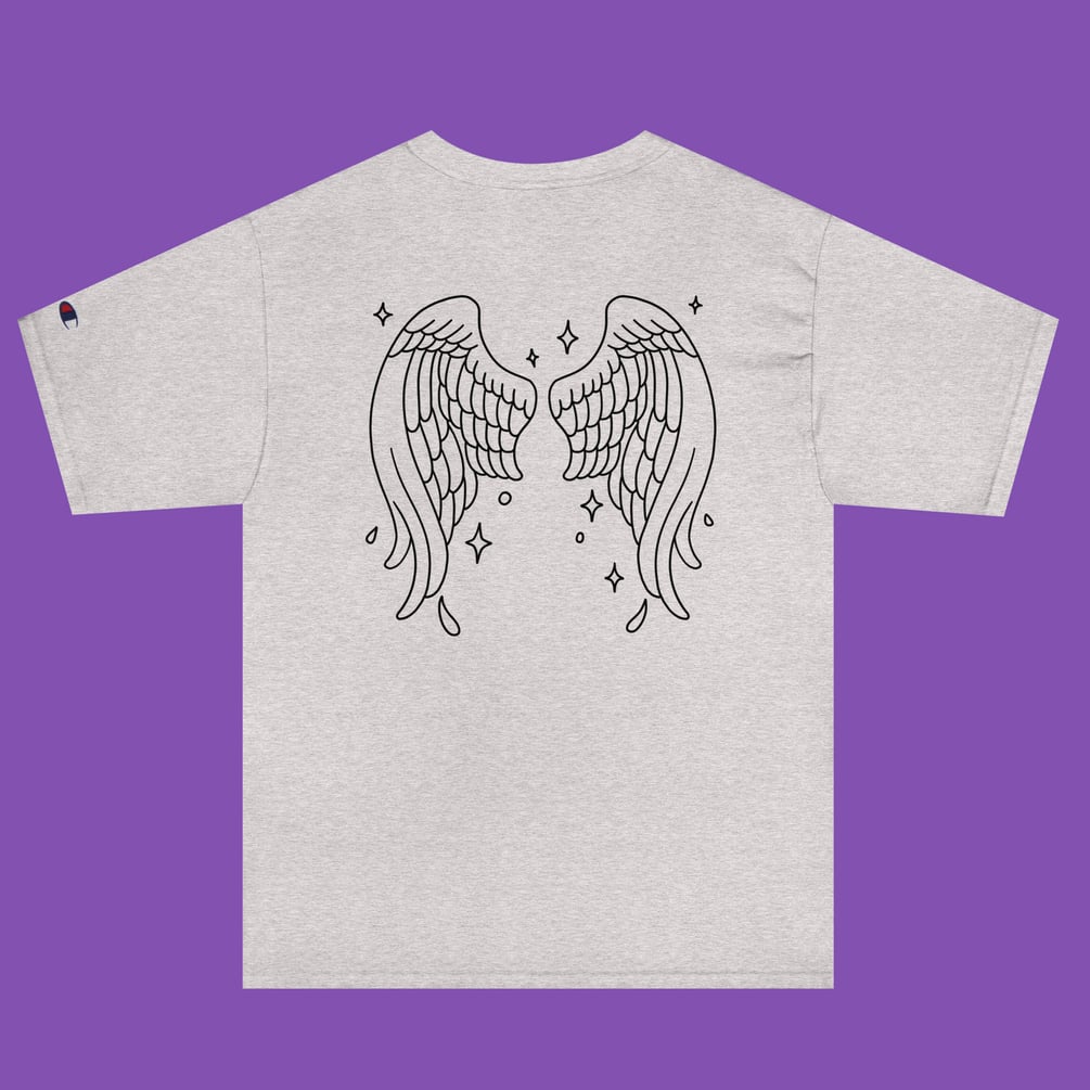 printed on a champion heavyweight t shirt. i drew the wings myself! :):):)